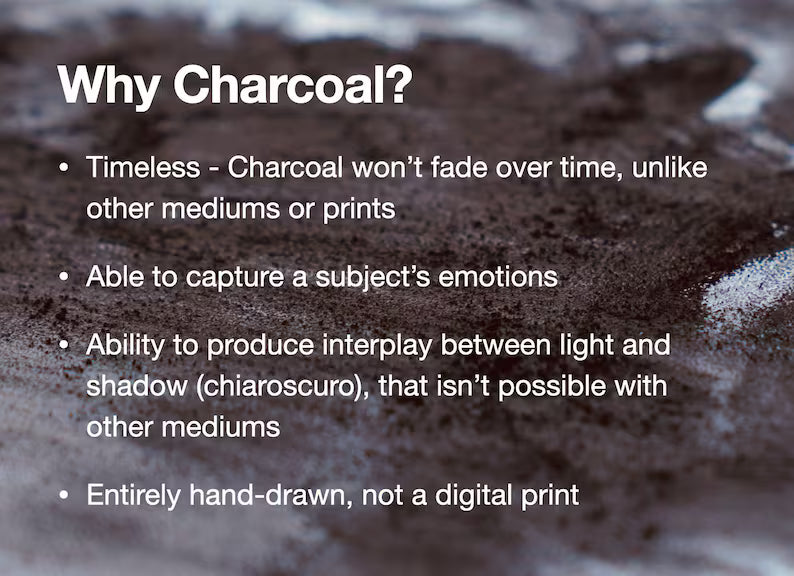 Beautiful custom hand drawn portraits of your most precious moments and loved ones in charcoal!
